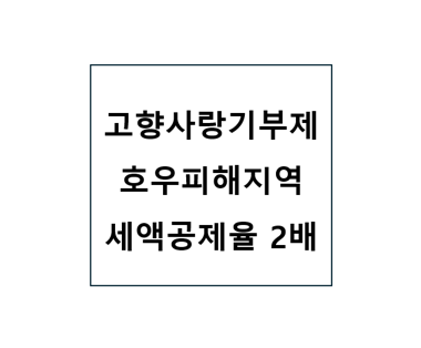 본인의 고향이 아닌 지역으로도 지원이 가능하므로 호우피해지역 재건을 위해 기부도 하면서 세액공제 혜택도 챙겨가시기 바랍니다. 세액공제율 2배 혜택은 특별재난지역 선포일 기준 3개월간만 적용됩니다.