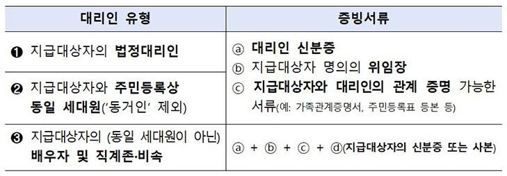 직접 신청이 원칙이지만, 불가능한 경우 아래와 같은 대리인이 신청할 수 있습니다.