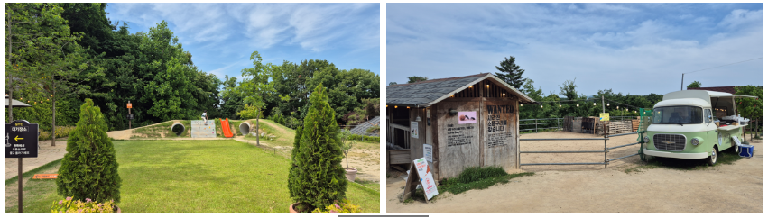 야외에는 포토스폿뿐만 아니라 미끄럼틀과 짚라인도 설치되어 있어 아이들이 체험 후에도 몸을 마음껏 움직이며 놀 수 있습니다.