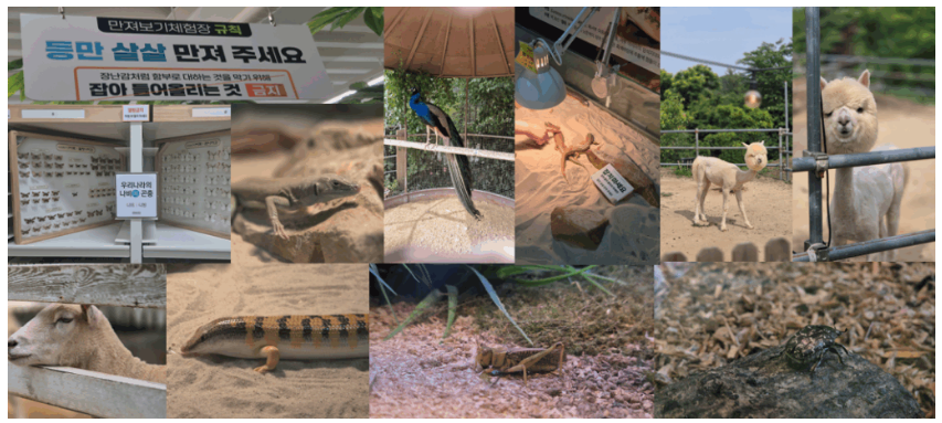 곤충 외에도 양, 토끼, 돼지, 공작, 칠면조 등 다양한 동물을 관찰할 수 있는 동물농장이 마련되어 있습니다. 서울대공원이나 에버랜드보다 훨씬 가까운 거리에서 생동감 있는 동물을 가까이서 볼 수 있어 만족도가 높습니다.