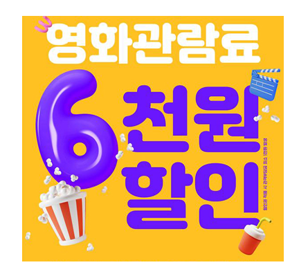 매달 마지막주 수요일에 사용하면 단돈 1,000원에 영화를 볼 수 있는 기회! 영화 관람료 할인권을 꼭 받아 누리시길 바랍니다.