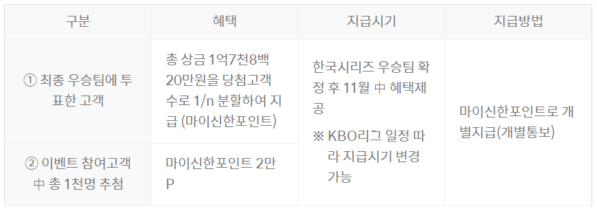 - 참여 대상: 이벤트 기간 내 1982 전설의 적금 신규 가입 후, KBO 우승팀에 투표한 고객