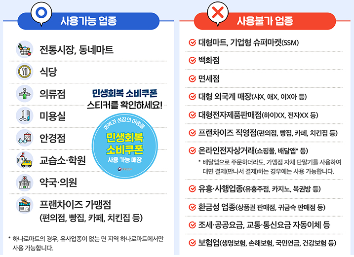 - 가능한 업종: 마트, 슈퍼, 식당, 편의점 등 (대형마트·백화점·온라인몰 제외)