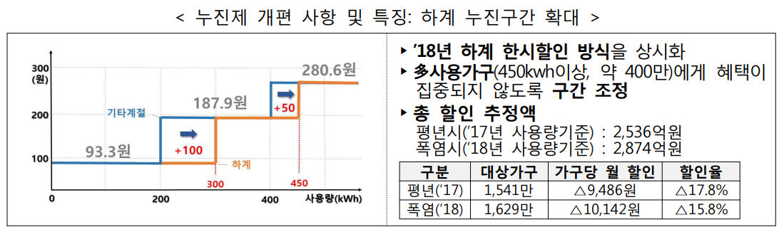 - 2단계 누진구간 조정: 기존 201~400kWh → 301~450kWh