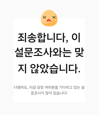 - 설문 추천이 무작위 – 이미 참여했거나 참여 불가능한 설문이 자주 표시됩니다.